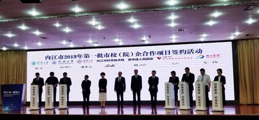 2019年4月26日,公司党委书记潘良明教授、经理廖强教授、副经理冉景煜教授、副经理李俊教授等一行5人参加“论道问技•甜城行”内江市2019年第一批市校(院)企合作项目签约仪式。签约活动由内江市人民政府主办,受到内江市市委,市政府的高度重视,市委书记马波等内江市委、市政府领导出席并见证了签约仪式。同时参会的还有清华大学、同济大学、西北工业大学、浙江大学、浙江工商大学、机械科学研究总院等高校和科研院所。签约...