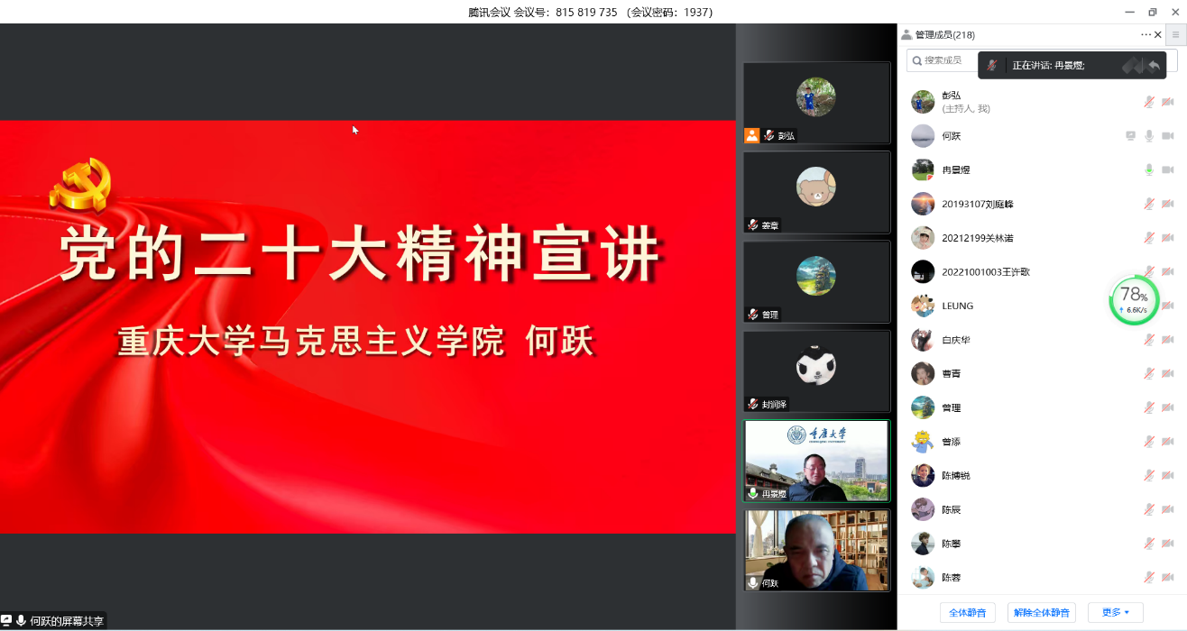 为深入学习宣传贯彻党的二十大精神,2022年12月15日,委邀请江南体育官方网站马克思主义公司何跃教授为公司师生解读党的二十大精神。本次宣讲通过腾讯会议线上举行,公司党委书记冉景煜主持, 260余名师生在线参与了学习。何跃教授从党的二十大主题和主要成果、过去五年的工作和新时代十年的伟大变革、马克思主义中国化时代化、全面建设社会主义现代化国家的目标任务、坚持党的全面领导和全面从严治党等七个方面对...