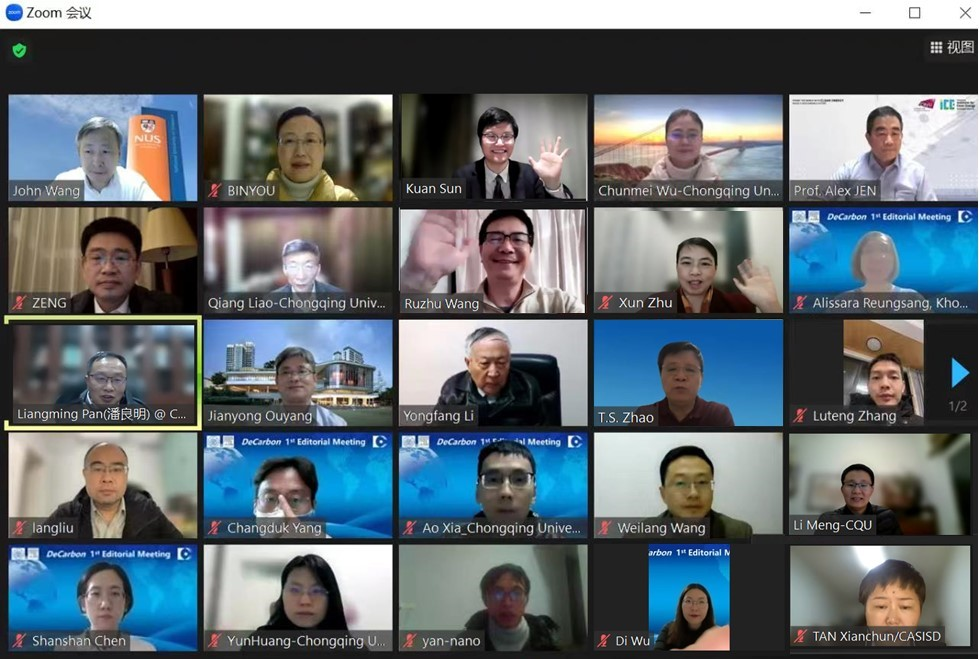 The first Editorial Meeting (Virtual) of DeCarbon was held on 14th January, 2023. Editors-in-chief, editors, editorial advisory board members, special guests, academic editors, publishing editors attended this meeting.《DeCarbon》首届编委会议于2023年1月14日在线上举行。期刊的主编、编辑、编辑顾问委员会成员、特邀嘉宾、学术编辑、出版编辑等人员出席了本次会议。At the beginning, Editor-in-Chief Profes...