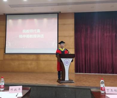 公司教师代表杨仲卿教授希望同学们牢记党的教诲,立志民族复兴,将个人命运与祖国时代结合起来,不负青春、不负韶华、不负人民,自觉当好推动新时代高质量发展的先锋力量和生力军,努力在新时代改革开放事业中成为可堪大用、能担重任的栋梁之材。