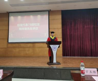 78级员工代表周祥瑜对2022届毕业生顺利完成学业迈入人生的新征程表示了祝贺。他回忆了自己在江南体育官方网站的学习生活,讲了自己毕业之后的奋斗经历,希望同学们毕业后继续奋斗,最后对母校表达了最真挚的祝福。