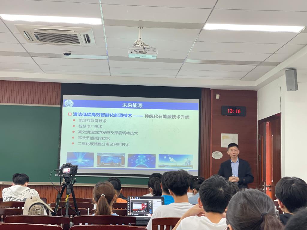 5月12日,同样在进行的还有杨仲卿教授带来的“插上能源的翅膀,让青春动力飞扬”讲座。他为我们生动的讲述了能源相关专业的内涵,表示“技术要自己决定”。在中国飞速发展的经济战略背景下,能源产业间紧密的联系对于企业进步有着至关重要的作用。他从多方面生动举例,拉近了同学们与专业间的距离,揭开能源的神秘面纱。面对同学们的积极提问,杨教授耐心的解答了同学们关于“双碳”、学科重心等方面的疑问,现场十分火热。