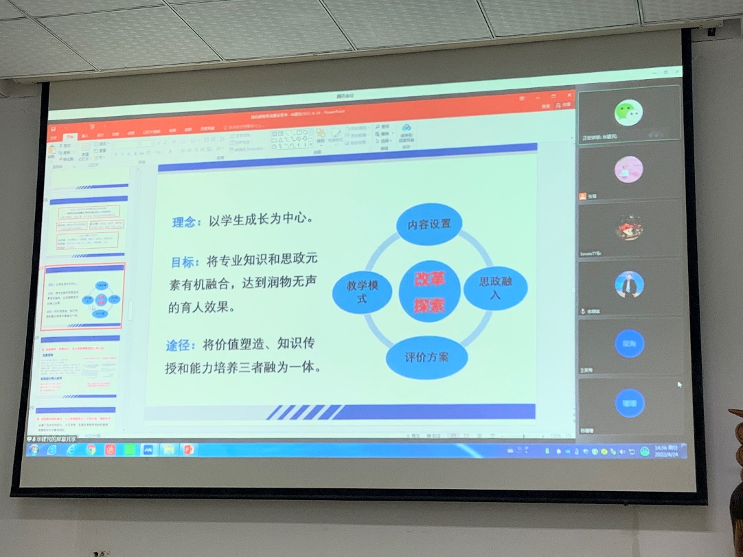 为深入推进课程思政建设,提升一线教师课程思政教育实践能力,2022年4月24日下午2点半,公司采用线上线下结合的方式在公司301会议室召开课程思政与教学能力专项培训。本次会议由公司副经理冉景煜教授主持,公司全体教师参加,会议特邀土木工程公司党委书记华建民教授、教学发展中心科学科技与创新部部长李珩高级工程师、jn江南李期斌教授作专题报告。