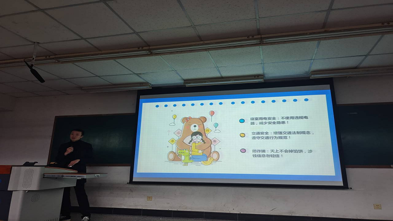 首先日常安全方面,李定超老师用幽默的方式提醒时刻谨记防诈骗,再三强调保护好自己的财产安全,并注意寝室用电安全和交通安全。树立规则意识,严格遵循公司疫情防控规定,非必要不离渝,离校务必请假。