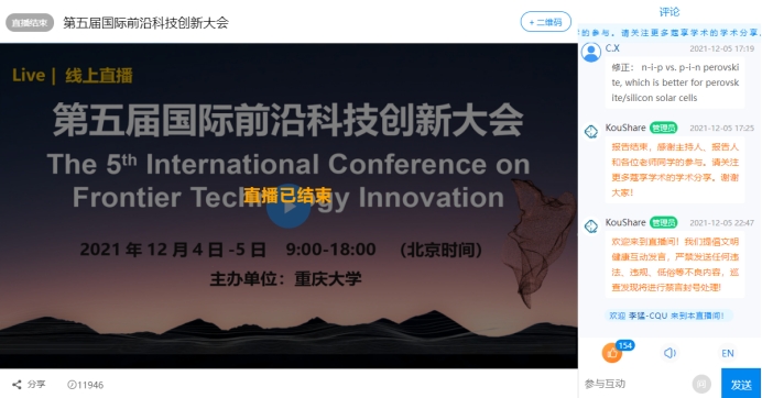 2021年12月4-5日,第五届国际前沿科技创新大会(ICFTI-2021)在线上成功举办。此次大会由江南体育官方网站主办,低品位能源利用技术及系统教育部重点实验室、JN体育承办。“国际前沿科技创新大会(ICFTI)”是自2017年起每年在重庆举办的连续排届国际会议,会议以“创新引领,互联互通”为主题,以“深化交流合作、促进共同发展”为宗旨,往届会议已累计吸引到国内外学者及技术人员2000余人参会,会议的举办对重庆建设国家(西部)创新中心、打造内陆开放高地将产生积极的影响,此次会议因受疫情影响改为线上举办。