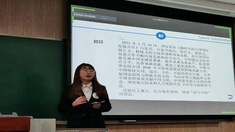 刘龙燚选手曾获得过多次“优秀员工”“优秀员工干部”等光荣称号,她向我们着重介绍了她的科研经历以及短期支教经历,当评委问到她在支教过程中感触最深的一件事时,她提到一位小朋友的话触动了她,让她认识到短期支教对于孩子们的帮助有限,并希望自己以后能够更多的为乡村教育事业做出自己的贡献。其即兴演讲主题是“授人以渔”,刘龙燚认为授人以渔最重要的是传授方法,并谈论到了“巴铁”以及中国对友邻的援助方式。