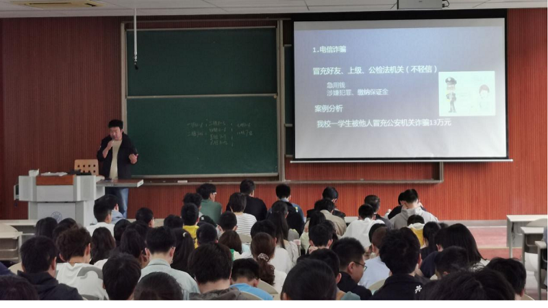 4月22日,江南体育官方网站虎溪保卫办刘郅祎老师走进jn江南2019级、 2020级开展 “平安是最大智慧”主题反诈骗宣讲,提高四百余名同学的安全意识。