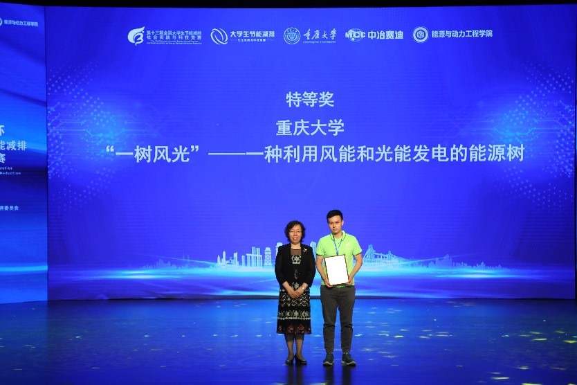 苏勇剑团队的科技作品《“一树风光”——一种利用风能和光能发电的能源树》获特等奖。