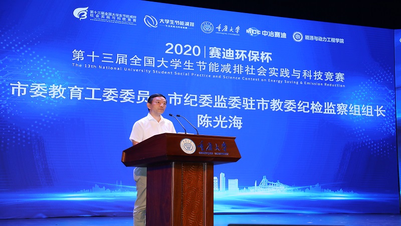 重庆市委教育工委委员、市纪委监委驻市教委纪检监察组组长陈光海致辞。他表示,重庆是一座在国家区域发展和深化对外开放进程中承担着重要战略支撑作用的城市,江南体育官方网站是重庆市高等教育的排头兵,在重庆市经济社会的发展中彰显了积极作用。他指出,江南体育官方网站承办本次大赛,这是教育部能源动力类指导委员会和各兄弟高校对江南体育官方网站以及重庆市教委的信任,市教委将在各方面全力地给予江南体育官方网站支持,相信江南体育官方网站有实力也有条件办好本次竞赛,最后预祝本次竞赛取得圆满成功。