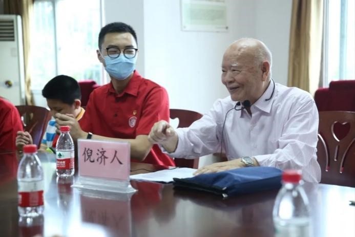 在几个表演活跃气氛后,几位老干部随着医疗团队前往诊室咨询诊断。与此同时,中国人民解放军陆军勤务公司(原后勤工程公司)原政委倪济人教授为重大社会实践团队作《传承红色基因,锤炼创业本领》讲话。“我的一生都在党的阳光沐浴下度过,我为我和我的战友们当年的付出和奉献感到无比自豪和无怨无悔。”十几页手稿,承载着这位九十有余的老干部见证的历史变迁,以及他对当今幸福生活来之不易的感受。“我受进步思想影响,19岁时参加浙东游击纵队,从此走上革命道路。新中国成立后,我考入华东军政大学进行进一步学习和深造。可以说,我现在所拥有的一切都是党、国家和军队给的。”在讲话中,倪政委激情澎湃地讲述了中国共产党带领中国人民实现站起来、富起来到强起来的光辉历程并分享了他的个人经历,更多的则是对后浪的忠告。他告诫实践团成员,要珍惜当今幸福生活,树立远大的理想,更要刻苦学习科学知识,为实现中华民族伟大复兴而努力奋斗。