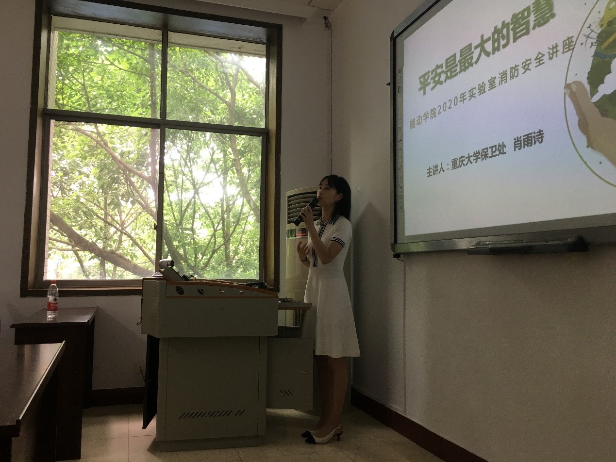 培训会上,肖雨诗老师首先以北京交通大学的实验室安全事故为切入点,告诉大家“原来危险就在身边”,强调了实验室安全规范工作的重要性。接着,肖老师步步推进,由事故的发生原因对实验室内常见的安全隐患进行了简单的说明,依次向大家讲解了如何报警、灭火以及逃生等消防知识,并强调了有关注意事项。例如拨打119电话时应如何正确阐述火灾发生的地点与情形、燃烧的基本知识、常见的灭火方法与对应的灭火剂分类等。关于逃生知识方面,肖老师重点指出了大家平时的理解误区,讲解了正确的逃生方法。肖老师还提到,校内的师生其实非常关注安全问题,保卫处时常会收到大家的反馈,在第一时间做出对应的调整。希望大家对实验室的安全问题也能有足够的重视。最后肖老师还向大家展示了灭火器、消防栓和灭火毯等消防器材的使用方法,并邀请老师与同学参与互动。