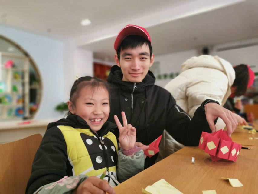 后期,志愿者们分别以传统文化和科学小实验为突破口,带着小朋友们亲身感受写春联、下棋的乐趣,并引导他们发现生活中的科学小知识。