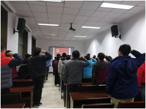 仪式在庄严的《中华人民共和国国歌》中开始,党员同志们在徐方正同志带领下,面向党旗庄严宣誓,表达了为共产主义事业奋斗终身的决心。
