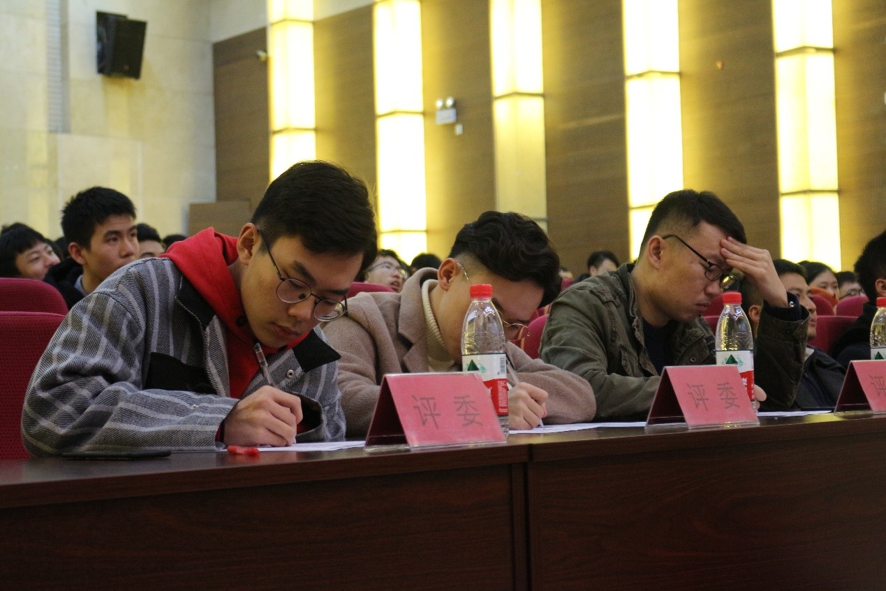本次比赛的评委由校辩论队2017级队员管仲,2018年校辩论赛全程最佳辩手张浩榛,校辩论队2007级队长李琳三位学长担任,同时jn江南副书记徐方正老师,2018级辅导员钟坤煜老师作为嘉宾出席了此次比赛。