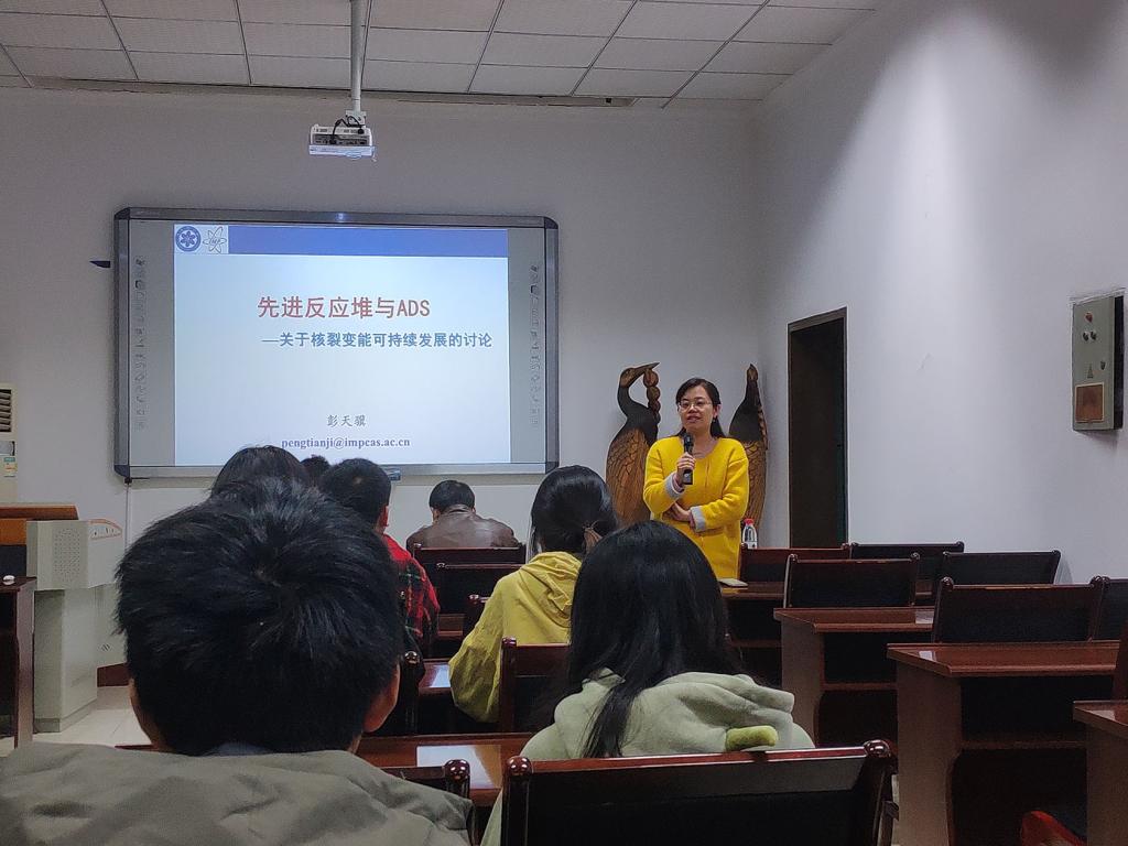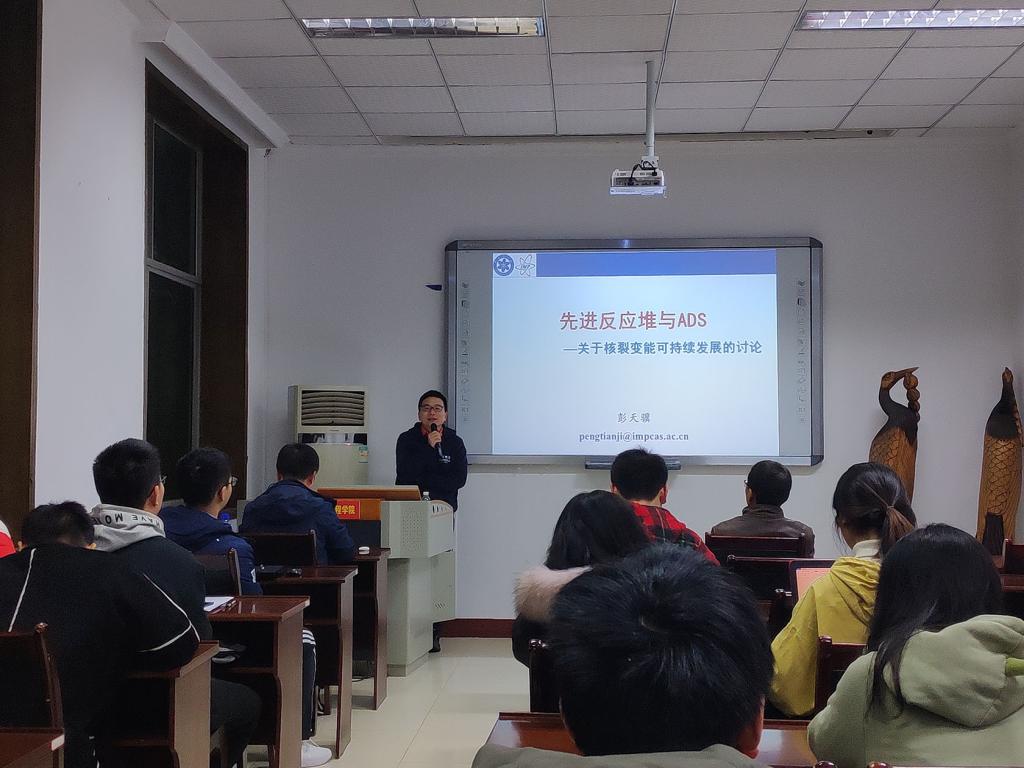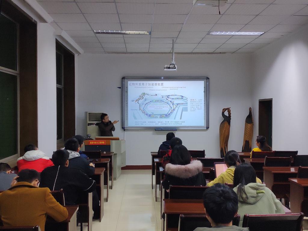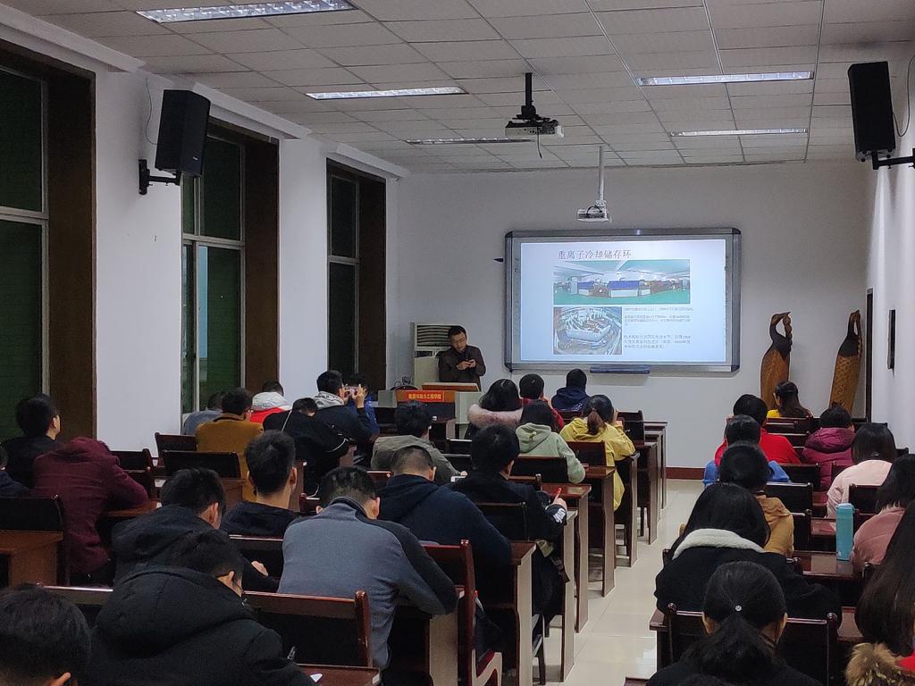 2019年11月19日晚上七点,在jn江南楼303教室举办了由中国科公司近代物理研究所带来的两场报告,分别是由中科院近物所直线加速器中心射频腔体室副主任张周礼研究员带来的RFQ直线加速器简介,和现任近代物理研究所反应堆室副主任彭天骥分享的先进反应堆与ADS。