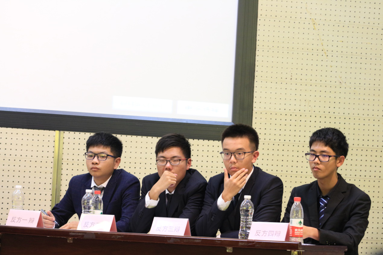 比赛共分为五个环节,在这个过程中双方辩手出口成章、针锋相对,但是不失风度,每个人都阐述了自己的观点,摆事实充分有力,讲道理精辟透彻。特别是比赛进入了自由辩论环节,双方唇枪舌战,互不相让,摆事实讲道理,现场气氛迅速升温,精彩不断,掌声雷动,可谓是全场最为精彩的部分。最后评委们重点表扬了发挥出色的参赛者,也指出了他们所存在的技巧问题。