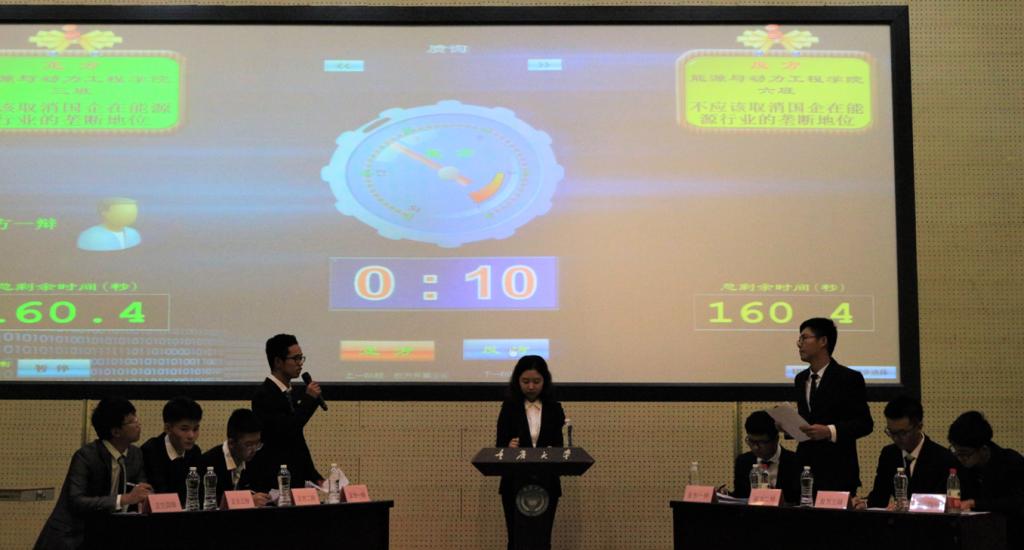 本次辩论赛的主题是:应不应该取消国企在能源行业的垄断地位。3班作为正方抽取了应该取消国企在能源行业的垄断地位。6班作为反方选择了不应该取消国企在能源行业的垄断地位。