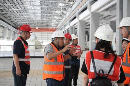 老师们首先参观国家电投习水二郎电厂。公司的老师,特别是青年教师,虽然具备渊博的理论知识,但大多缺少实践能力,尤其缺少在一线生产企业的工作经验。在二郎电厂,公司教师分为四组,在电厂工程师的带领下,爬锅炉,进车间,边参观边学习,全面了解了火力发电的基本原理、工作流程及其主要设备。由于老师们的专业背景不同,在现场参观时,每到一个主体设备及重要工段,从事电厂研究的老师、电厂的陪同人员都会给老师们详细讲解,还会就其中的专业问题展开积极讨论交流。