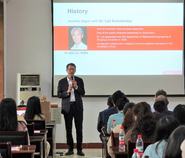 康明斯动力系统事业部中国区工程总监王涛对康明斯林慰梓博士奖学金的起源和发展进行了介绍。林博士奖学金的设立旨在帮助品学兼优的工程技术专业女老员工顺利完成学业,并使她们在就业市场上获得平等竞争的机会,同时也为女性赋能,彰显了康明斯多元、公平、包容的文化理念。