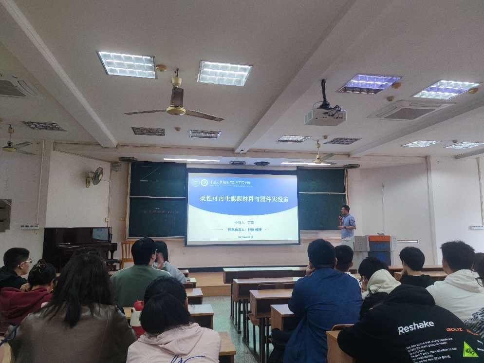 柔性可再生能源材料与器件实验室王磊老师从团队成员、研究方向、科研平台、员工培养四方面介绍了团队情况。