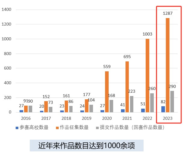 江南体育官方网站于2020年首次参与该赛事,2022年加入全国大赛组委会高校,2023年首次组织校级评审活动。“核+X”创意大赛也于2022年列为江南体育官方网站研究生学科竞赛分类目。