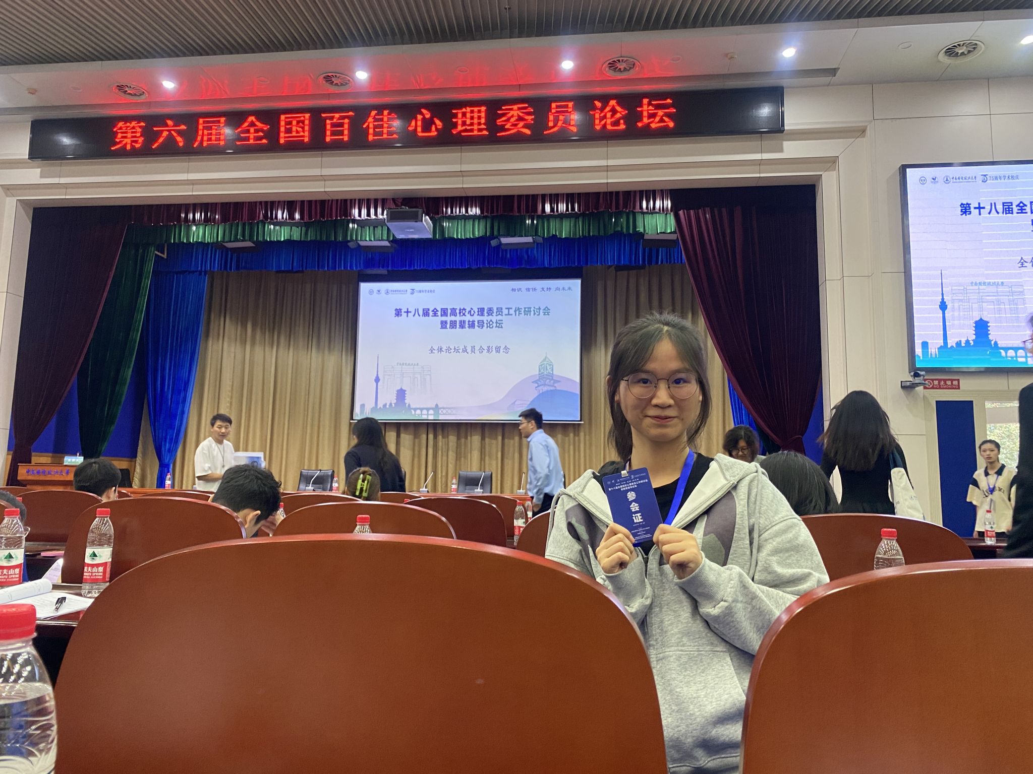 肖玉春同学在2023年6月公司党委学工部开展的江南体育官方网站第七届心理委员先进个人评选活动中获得全校“十佳心理委员”称号后,被推送作为公司代表参加此次研讨会,她表示“参加这次心理委员工作研讨会使我受益匪浅,我学习到了其它高校优秀心理委员的先进事迹、一丝不苟的工作态度,也学习到了许多心理专家教授的心理学知识,所以我更加体会到了心理委员在心理建设朋辈辅导中的重要作用,同时我也励志在今后能够更加多地反思自己心委工作的不足,与咱们公司其他优秀的心理委员一道力求真正发挥出心理委员最理想的效用。”