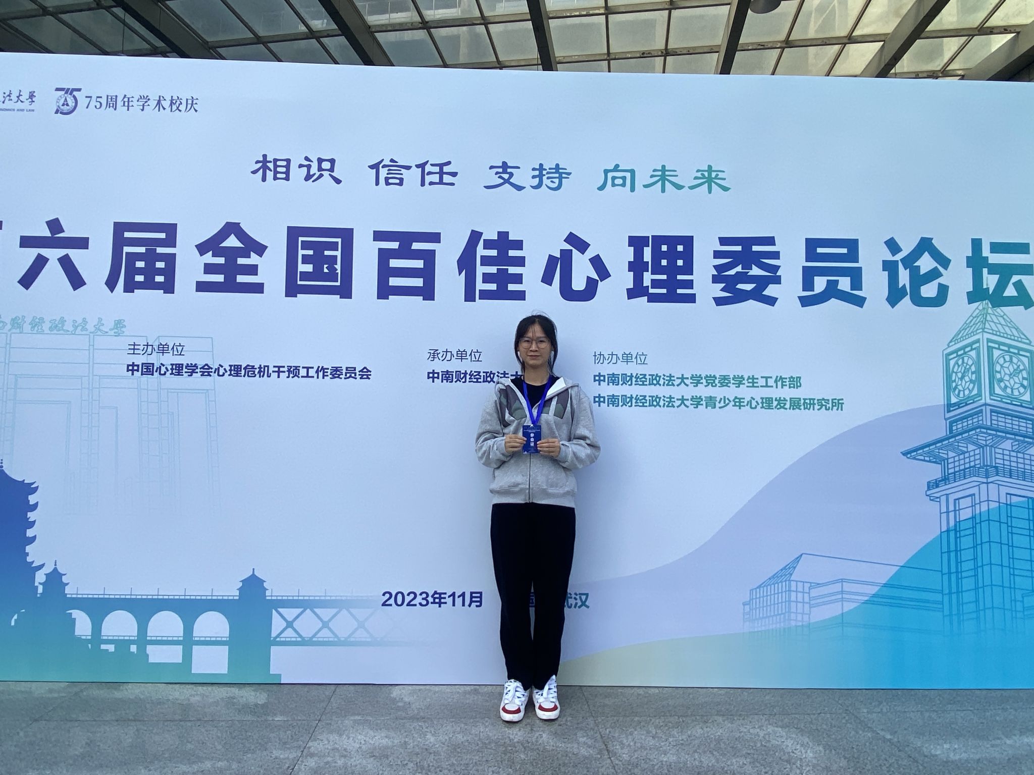 11月1日-3日,由中国心理学会主办的第十八届全国高校心理委员工作研讨会暨朋辈辅导论坛在中南财经政法大学举行。公司员工肖玉春作为公司员工代表参与此次研讨会并斩获“全国百佳心理委员”的荣誉称号。